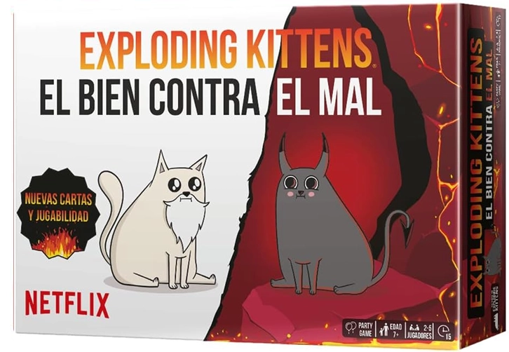 El Bien contra el Mal es una expansión del juego de cartas Exploding Kittens, con más emoción, más explosiones y nuevas cartas de apocalipsis. Sé más astuto que tus rivales y arriésgalo todo para conseguir la carta más poderosa del juego.