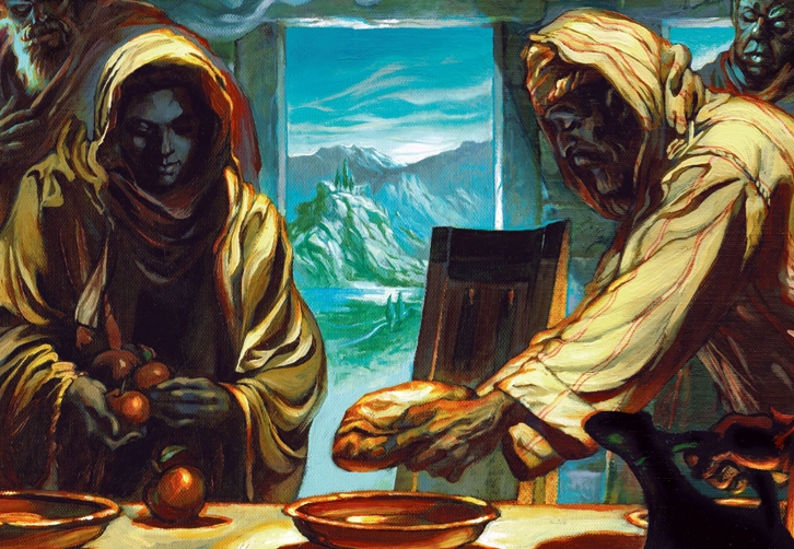 En Jerusalén: Anno Domini, representamos a una de las comunidades de seguidores de Jesús de Nazaret que, viniendo a Jerusalén desde pueblos y aldeas cercanas, quieren acercarse al lugar de la Última Cena y posicionarse lo más cerca posible de los asientos de Jesús. y sus apóstoles. Cuanto más cerca estemos, más puntos ganaremos al final del juego. También puntuamos por ofrecer fichas y fichas de parábolas que hemos acumulado.