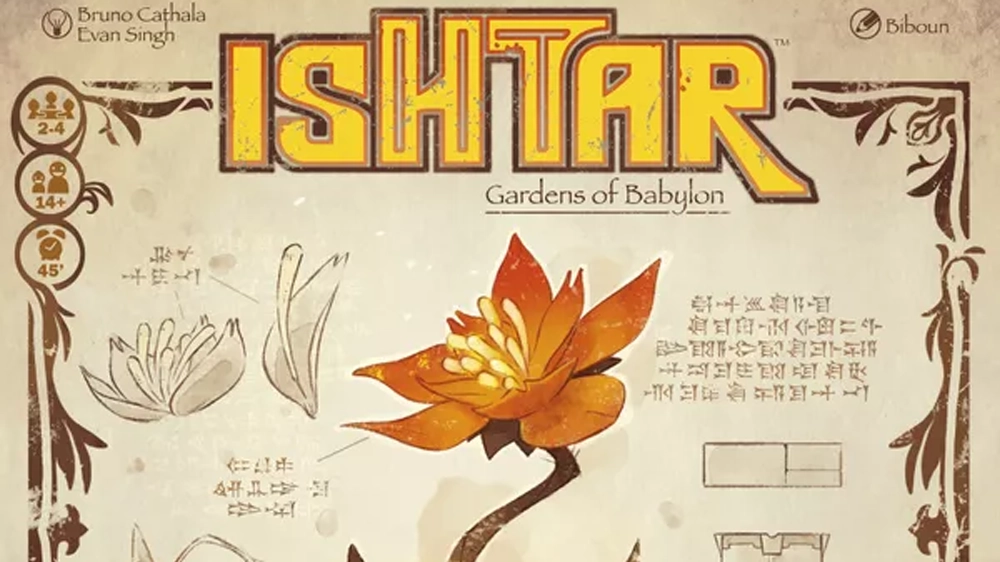 Del galardonado diseñador Bruno Cathala, Ishtar es un juego en el que desempeñas el papel de un jardinero que intenta transformar el desierto seco en los Jardines Colgantes Perdidos de Babilonia. Para cumplir tu misión tendrás que plantar flores que, si las colocas bien, te ayudarán a recolectar gemas preciosas y activar acciones. Ya sea para comprar árboles (que bloquearán el vínculo entre dos puntos de flores, además de ganar puntos) o para comprar mejoras (como obtener dos puntos más por tarjeta de árbol al final del juego), recolectar gemas será una tarea crucial. parte del juego.