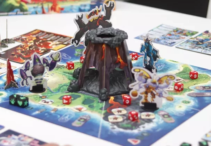 En King of Monster Island, los jugadores jugarán como monstruos gigantes que deben trabajar juntos para derrotar a un jefe titán antes de que termine de construir un portal interdimensional. En cada turno, los jugadores tirarán dados para dañar a los súbditos y a los jefes, curarse a sí mismos, ganar energía y comprar cartas, moverse por la isla, activar el apoyo humano y aumentar la fama. Las acciones del Jefe, están controladas completamente por el juego mismo. Usando los resultados de los dados lanzados en el volcán, el Jefe se moverá, activará a sus secuaces y atacará a los monstruos cercanos.