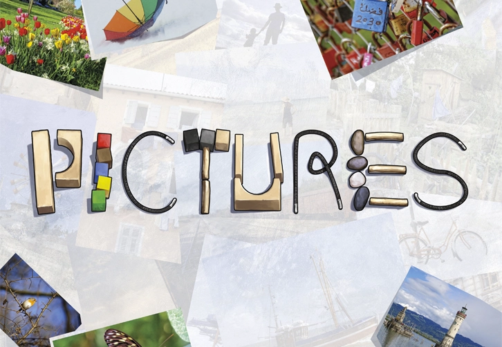 Pictures es un juego familiar de juego rápido con reglas muy simples. Forma la imagen en tu tarjeta secreta con un conjunto de componentes, ya sea cordones de zapatos, cubos de colores, tarjetas de iconos, palos y piedras o bloques de construcción, de tal manera que los otros jugadores adivinen qué imagen has representado: