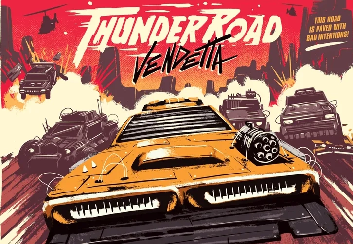 Thunder Road Vendetta es un juego de mesa que vuelve con una restauración del juego de 1986 de caos sobre el asfalto. Es un juego de turnos rápidos y decisiones comprometidas y arriesgadas donde tendrás que dirigir a tu equipo mientras recorren carreteras llenas de riesgos, esquivan peligros, chocan contra coches y disparan armas. ¡Si todo lo demás falla, avisa al helicóptero!